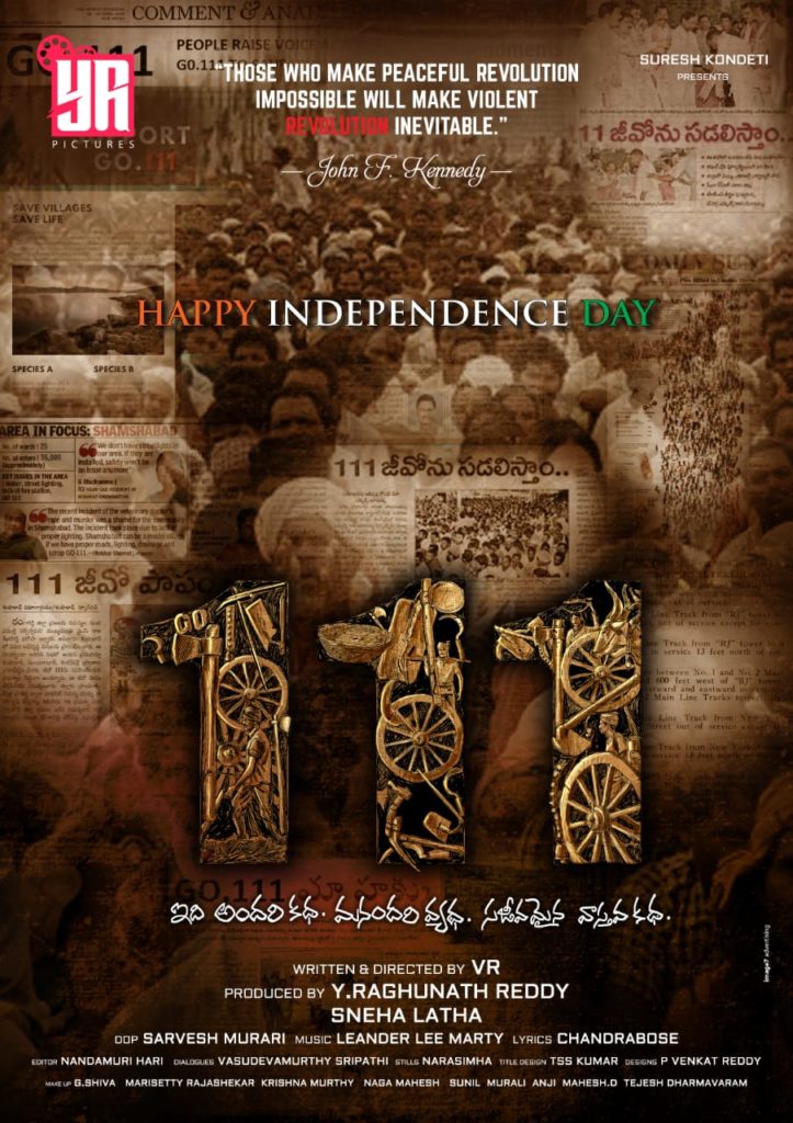 జీవో 111… ఈ పేరు వింటేనే అందరికీ హడల్. ఎందుకంటే ఇటీవల తెలంగాణ రాష్ర్ట రాజకీయాల్లో ప్రకంపనలు సృష్టించి అన్ని వర్గాల్లో భయాందోళనలను రేకెత్తించిన జీవో ఏదైనా ఉందంటే అది ఇదే. ఈ రాజకీయ రాక్షస క్రీడలో వ్యవసాయ రైతులు బలవుతున్నారు. మెతుకునిచ్చి బతుకులు పండించే పచ్చని పల్లెలు కాంక్రీట్ సౌధాలకు సమాధులవుతున్నాయి. జీవోలను అడ్డుపెట్టుకుని నాయకులు, వారి తొత్తులు చేసే దురాగతాలపై ఓ యువకుని తిరుగుబాటు ఫలితమే ఈ 111. సమాజంలోని వాస్తవ పరిస్థితులకు, మృగ్యమౌతున్న ప్రశాంత జీవనబంధాలకు హృద్యమైన దృశ్యరూపం, ఇది ఏ ఒక్కరిదో కాదు… ఇది అందరి కథ. మనందరి వ్యథ. సజీవమైన వాస్తవ కథ . ప్రభుత్వ జీవోలు ఏవైనా ప్రజల మెరుగైన జీవన విధానానికి బలమైన ఆయుధాలవ్వాలని చెప్పే ప్రయత్నంతో తెరకెక్కుతున్న చిత్రమిది. హైదరాబాద్ శివారులో జీవో 111 పరిధిలో ఉన్న ఓ పల్లెటూరి నేపథ్యంలో ఈ 111 సినిమా ఉంటుంది. సురేష్ కొండేటి సమర్పణలో వై. రఘునాథరెడ్డి, స్నేహలత ఈ సినిమాని నిర్మిస్తున్నారు విక్రమార్కుడు లాంటి పెద్ద పెద్ద సినిమాలకు సినిమాటోగ్రఫీ అందించిన సర్వేస్ మురారి ఈ 111 సినిమాకి డీవోపీ, కమల్ హాసన్ బ్యానర్లో పనిచేసి తమిళ చిత్రసీమలో ఎంతో మంచి పేరు సంపాదించుకున్న లెండర్ లీ మార్టి సంగీతం అందిస్తున్నారు. తెలుగు సినిమా పరిశ్రమలో తనకంటూ ఓ ప్రత్యేక స్థానం సంపాదించుకున్న చంద్రబోస్ పాటలు రాస్తున్నారు. నందమూరి హరి ఎడిటర్. ఇంమంచి మేకింగ్ విలువలు, మంచి నటులు, విప్లవాత్మక కథ తో ఈ చిత్రం తెరకెక్కుతోంది. చిత్ర నిర్మాతలు మాట్లాడుతూ ఈ సినిమా మంచి తారాగణంతో రూపొందుతోందని, త్వరలోనే పూర్తి వివరాలు తెలియజేస్తామని చెప్పారు. మంచి చిత్రాలను అందించాలన్న సంకల్పంతో ఈ సినిమా చేస్తున్నామన్నారు.