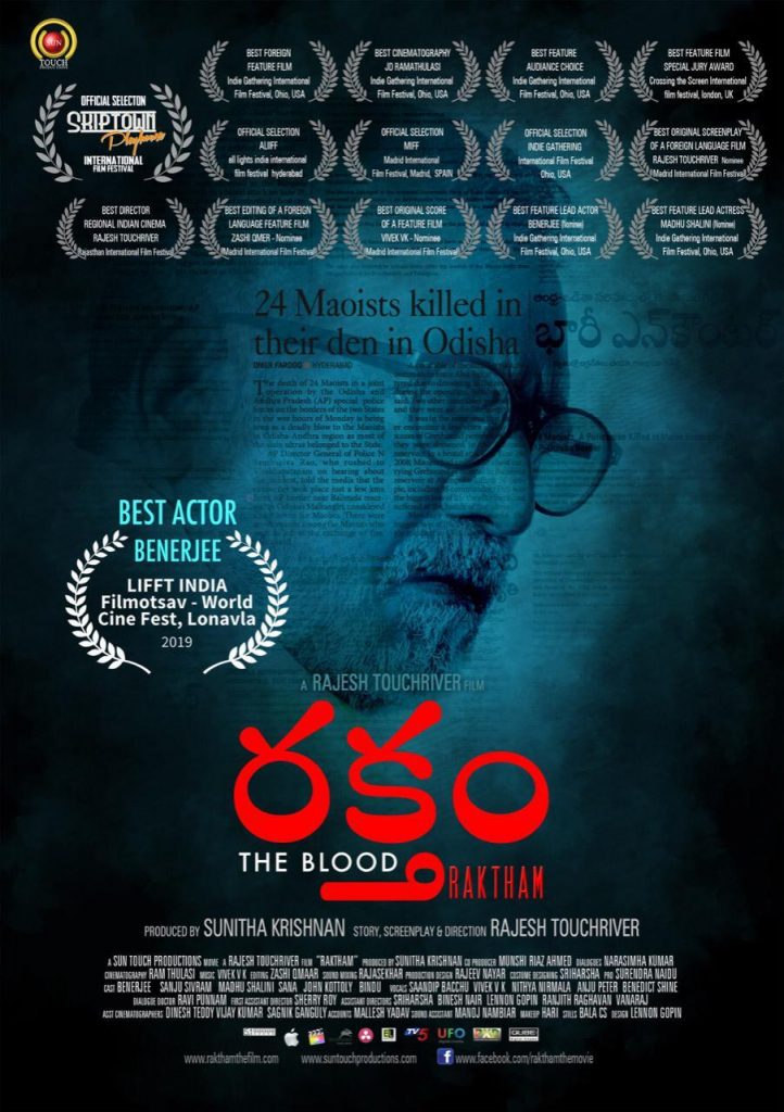 ముంబైలోని లోనావాలాలో ఇటీవల ప్రతిష్టాత్మకంగా జరిగిన వరల్డ సినీ ఫెస్ట్ లిఫ్ట్ ఇండియా ఫిల్మోత్సవంలో రక్తం చిత్రానికి గాను ఉత్తమ నటుడిగా తెలుగు బెనర్జీ అవార్డును అందుకున్నారు. ఈ చిత్రాన్ని జాతీయ అవార్డు గ్రహీత రాజేష్ టచ్ రివర్ రూపొందించారు. సోషల్ యాక్టివిస్ట్ సునీతా కృష్ణన్ ఈ చిత్రాన్ని నిర్మించారు. ఈ అవార్డు అందుకున్న తొలి తెలుగు నటుడు బెనర్జీ కావడం గమనార్హం.