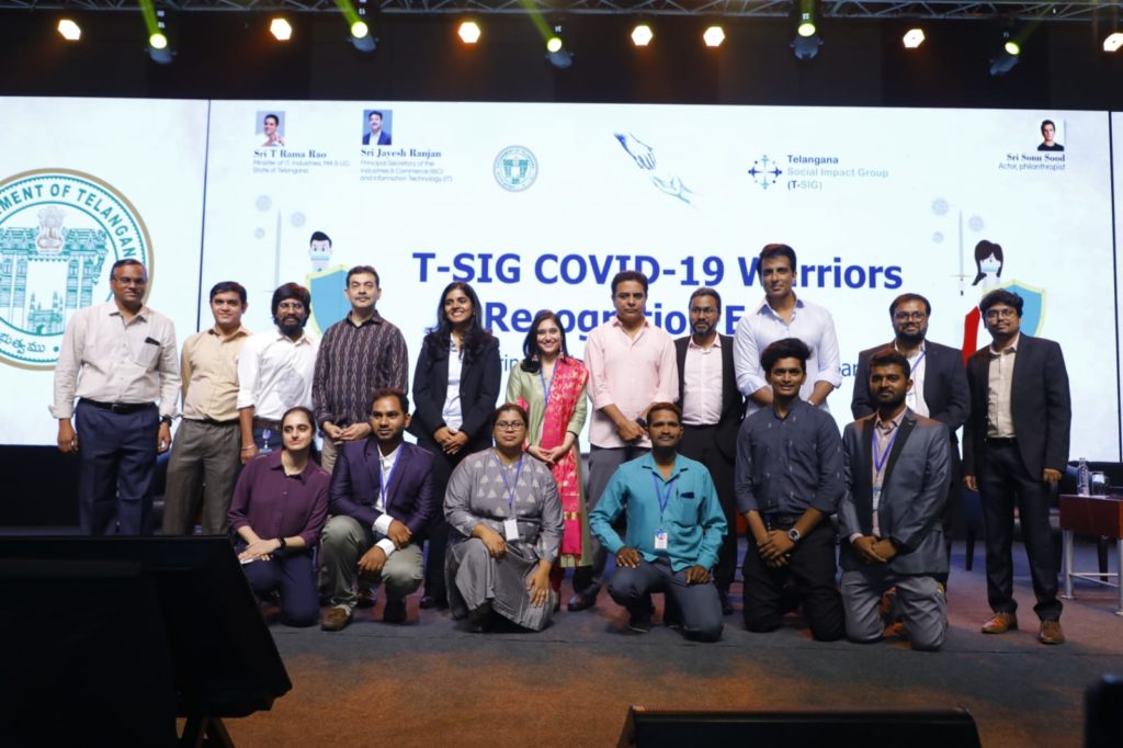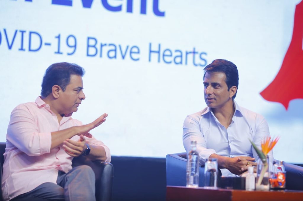 Sonusood, Hon’ble Minister @KTRTRS Principal Secretary of IT E&C Sri Jayesh Ranjan garu. The event is hosted by @TelanganaSIG the CSR cell of govt of Telangana