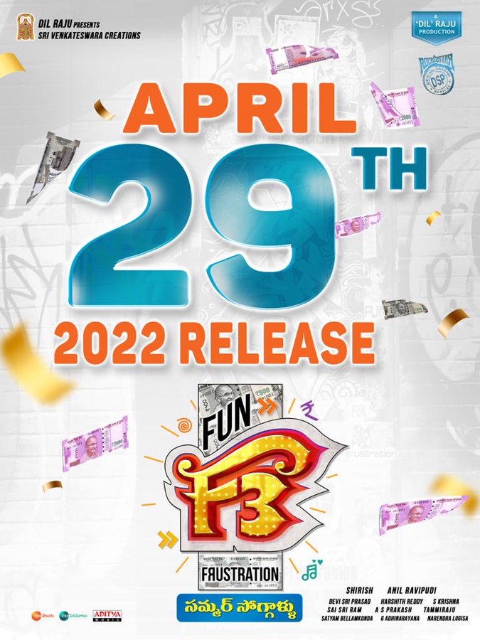 Announcing the same, the producer Dil Raju said, “To facilitate release for Bheemla Nayak we are moving our F3 Movie from Feb 25. As Mahesh Babu starrer Sarkaru Vaari Paata was announced on April 1st and Yash starrer KGF Chapter 2 on April 14th, F3Movie will now release on April 29th.”