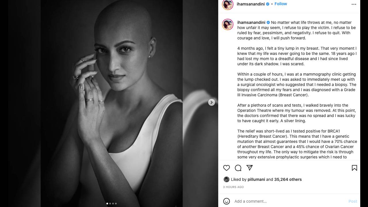 Today morning Hamsa Nandini revealed shocking news by sharing a post on Twitter and Instagram. According to Hamsa Nandini, she is currently battling breast cancer. The Telugu actress revealed that she felt a tiny lump in her breast, four months ago. After a meet up with a Surgical Oncologist, she came to know that she was diagnosed with a Grade III Invasive Carcinoma – Breast Cancer. She is currently undergoing Chemotherapy.