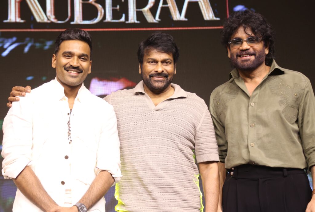సూపర్ స్టార్ ధనుష్, కింగ్ నాగార్జున, రష్మిక మందన్న లేటెస్ట్ యునినామస్ బ్లాక్ బస్టర్ శేఖర్ కమ్ముల ‘కుబేర’. శేఖర్ కమ్ముల అమిగోస్ క్రియేషన్స్ ప్రైవేట్ లిమిటెడ్తో కలిసి SVCLLPపై సునీల్ నారంగ్, పుస్కుర్ రామ్ మోహన్ రావు ఈ చిత్రాన్ని హై బడ్జెట్ హై ప్రొడక్షన్ వాల్యూస్ తో నిర్మించారు. కుబేర తెలుగు, తమిళం, హిందీ, కన్నడ, మలయాళ భాషలలో జూన్ 20న ప్రపంచవ్యాప్తంగా గ్రాండ్ గా విడుదలై యునానిమస్ బ్లాక్ బస్టర్ విజయాన్ని అందుకొని హౌస్ ఫుల్ బుకింగ్స్ తో సక్సెస్ ఫుల్ గా రన్ అవుతోంది. ఈ సందర్భంగా మేకర్స్ బ్లాక్ బస్టర్ కుబేర సక్సెస్ మీట్ నిర్వహించారు. మెగాస్టార్ చిరంజీవి చీఫ్ గెస్ట్ గా హాజరైన ఈ వేడుక చాలా గ్రాండ్ గా జరిగింది.