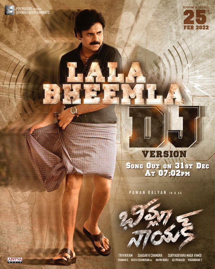Today morning the makers of Bheemla Nayak took to Twitter  and  announced that they are releasing the DJ version of hit song, La La Bheemla from Power Star  Pawan Kalyan and Rana Daggubati starrer. The song will be released on 31st December at 07:02 PM. The music lovers and the fans of Pawan Kalyan are eagerly waiting for this song composed by Butta Bomma fame SS Thaman.