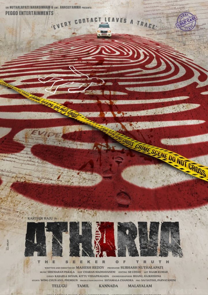 ఈ నేపథ్యంలో తాజాగా మాస్ మహారాజా రవితేజ చేతులు మీదుగా ఈ సినిమా తెలుగు టైటిల్ లోగో, మోషన్ పోస్టర్‌ విడుదల చేశారు. నేను నమ్మిన సత్యం, వెతికే లక్ష్యం, దొరకాల్సిన సాక్ష్యం చేధించేవరకు ఈ కేసును వదిలిపెట్టను సార్.. అంటూ హీరో చెబుతున్న డైలాగ్స్ ఈ మోషన్ పోస్టర్‌ లో హైలైట్ అయ్యాయి. బ్యాక్ గ్రౌండ్ స్కోర్ మేజర్ అట్రాక్షన్ గా నిలిచింది. అతి చిన్న వీడియోతోనే సినిమాపై ఆసక్తి పెంచేశారు మేకర్స్. అధర్వ అంటూ పడిన టైటిల్ బోల్డ్ నలుపు అక్షరాలతో వ్రాయబడి ఉండగా, మధ్య పదం మాత్రం DNA రేఖాచిత్రంతో ఎరుపు రంగులో పెయింట్ చేయబడటం సినిమాలో ఉన్న వైవిధ్యాన్ని బయటపెడుతోంది.