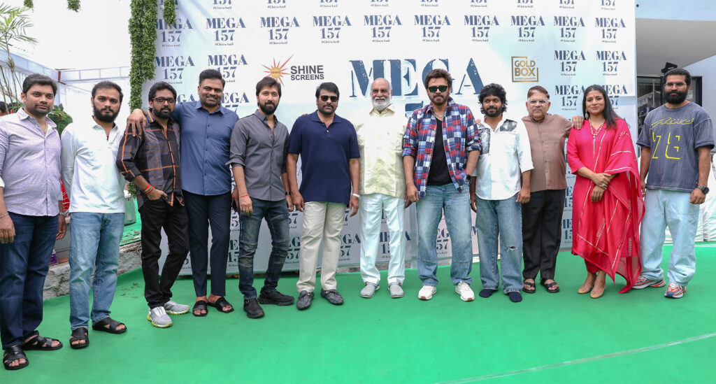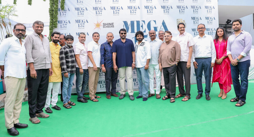 #Mega157 ప్రాజెక్ట్ను ఈరోజు ఉగాది పండుగ సందర్భంగా అధికారికంగా పూజా కార్యక్రమంతో లాంచ్ చేశారు. ఇది చిత్రానికి గొప్ప ప్రారంభాన్ని సూచిస్తుంది. ఈ వేడుకకు విక్టరీ వెంకటేష్ క్లాప్ ఇచ్చారు, అల్లు అరవింద్ కెమెరా స్విచ్చాన్ చేశారు. లెజెండరీ దర్శకుడు కె. రాఘవేంద్రరావు ఫస్ట్ షాట్కు దర్శకత్వం వహించారు. స్టార్ నిర్మాతలు దిల్ రాజు & శిరీష్ స్క్రిప్ట్ను మేకర్స్కు అందజేశారు. ఈ కార్యక్రమంలో నాగ వంశీ, యువి క్రియేషన్స్ విక్రమ్, దర్శకుడు వశిష్ట, శ్రీకాంత్ ఓదెల, బాబీ, శివ నిర్వాణ, వంశీ పైడిపల్లి, మైత్రి నవీన్ & రవి, శిరీష్, అశ్విని దత్, రామ్ ఆచంట, శరత్ మరార్, విజయేంద్ర ప్రసాద్, కెఎస్ రామారావు, కెఎల్ నారాయణ, సురేష్ బాబు, వెంకట సతీష్ కిలారు, జెమిని కిరణ్, చుక్కపల్లి అవినాష్, జెమిని కిరణ్, నిమకాయల ప్రసాద్ వంటి చిత్ర పరిశ్రమకు చెందిన అనేక మంది ప్రముఖులు పాల్గొన్నారు.