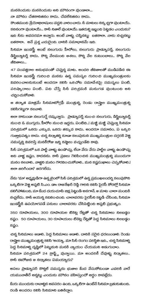 Mohan Babu took to his Twitter and penned an open letter.