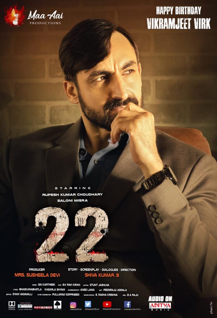 Shivakumar B. who has worked in Direction Department of Dashing Director Puri Jagannadh, Sensational Director VV Vinayak, Super Successful Director Maruthi is Directing ’22’ Vikramjeet Virk is playing a crucial role in this film. He is celebrating his birthday on July 19th. On this occasion, Team ’22’ unveiled Vikramjeet’s stylish look from the film extending birthday wishes to him. Vikramjeet said, “Shiva is a very talented person. He handled the film quite well though this is his first movie. Rupesh is a very good actor and for sure he will be having a bright future. The film came out very well. Everyone will love ’22’ which is a different action thriller.”