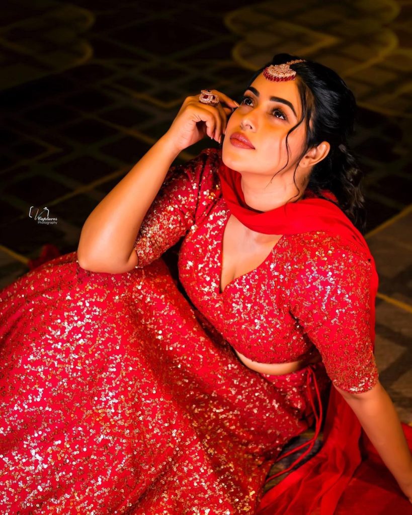 Poorna in Red coloured Dress in dazzling looks